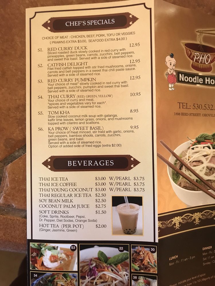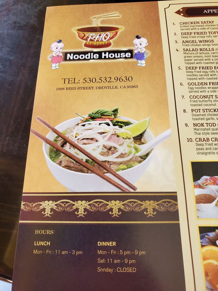 Pho Noodle House in Oroville offers a diverse menu with Asian Fusion, Thai, and noodle options. Customers rave about the fresh and flavorful dishes, from the Chicken & Mixed Vegetables Rice to the Yellow Curry and Thai Iced Tea. The cozy atmosphere and attentive service make dining here a pleasant experience. Highlights include the generous portions of pho with rich broth and the flavorful Chow Mein. The restaurant also offers a variety of appetizers, salads, pan-fried noodle entrees, rice dishes, and chef specials. Whether you're in the mood for a classic Pad Thai or a refreshing Thai Iced Coffee, Pho Noodle House promises a memorable dining experience with exceptional service.